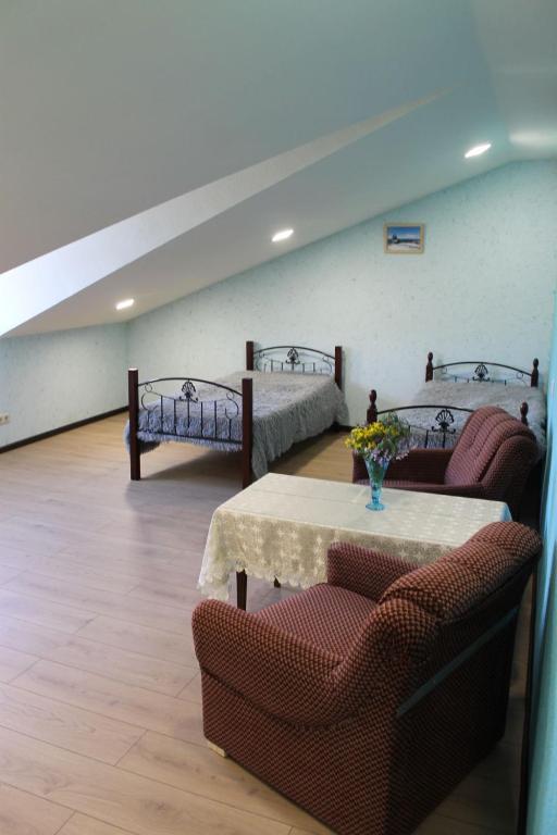 "Тихое место. Огромный дом. Хорошие кровати. Не дорого. Нам нужно было только переночевать. Подходит для больших компаний. 8 человек. Есть всё необходимое для проживания!"